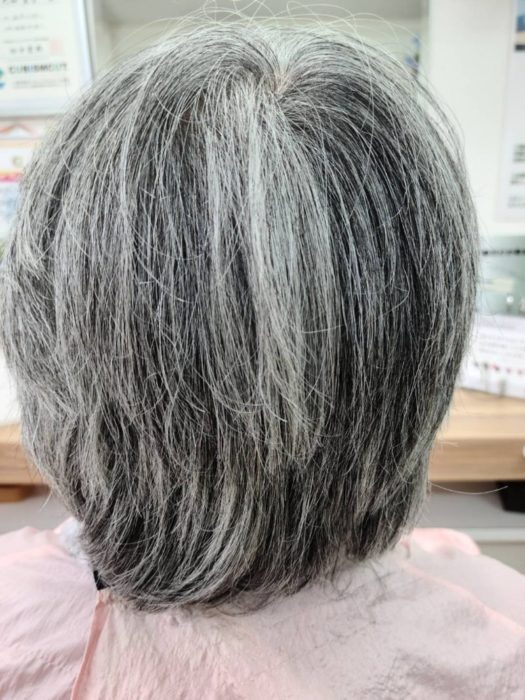 頭の痛いは左右非対称 ショートカット グレイヘア
