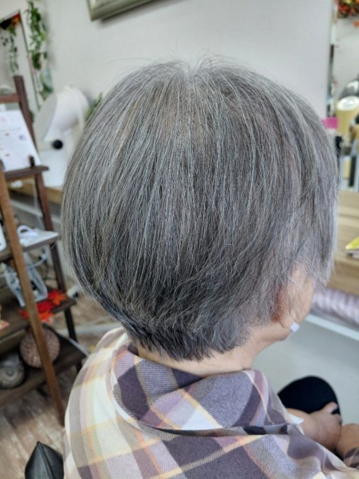 2025年11月20日 / 最終更新日 : 2025年11月30日 pappy キュビスムカット グレイヘア 乾かすだけ 簡単スタイリング ショートヘア 毎月カットにいらっしゃるゲスト様。気になる前髪と襟足をスッキリカット! 乾かすだけで収まる簡単スタイリングヘア!おすすめです。 After Before